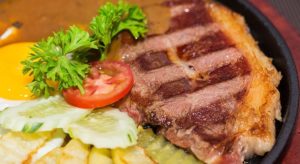 • 02 suất bít tết Size vừa: Bít tết bò Úc hoặc thăn bò Mỹ với khoai, trứng, bánh mì và salad (bò 120gram/suất + sốt tiêu xanh hoặc sốt kem nấm)