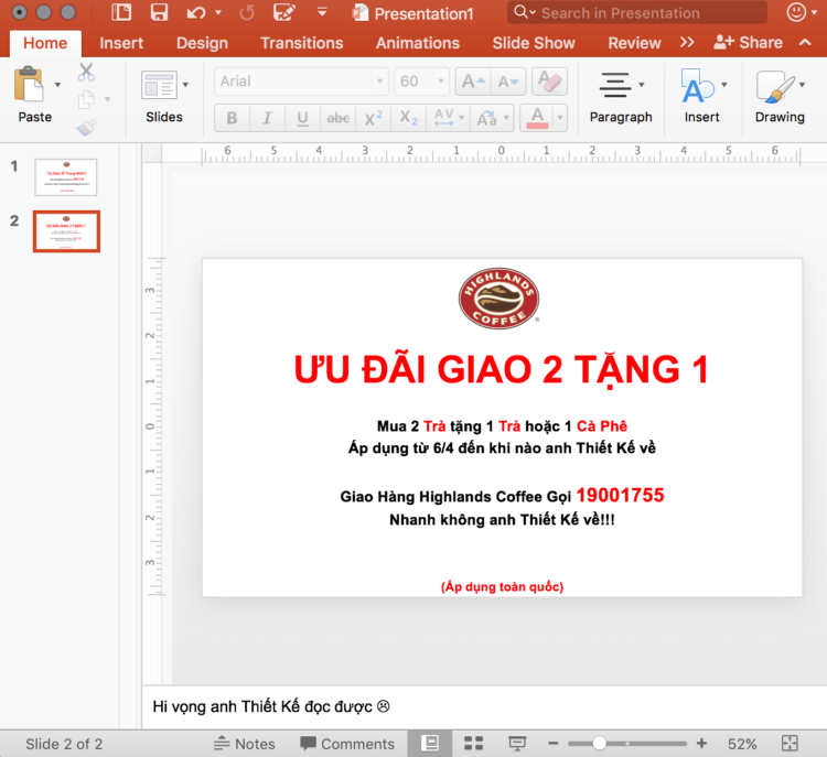 • Ưu đãi chỉ áp dụng cho dịch vụ Giao Hàng Highlands Coffee.