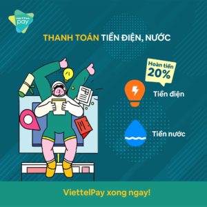 ViettelPay hoàn tiền 20% giá trị thanh toán cho 01 giao dịch thanh toán tiền điện trong tháng đầu tiên (tối đa 50.000 đồng/Thuê bao/ Tháng).