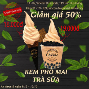 Giảm giá 50% cho 2 sản phẩm Kem phô mai trà sữa cho bất kỳ hóa đơn nào trên 50k