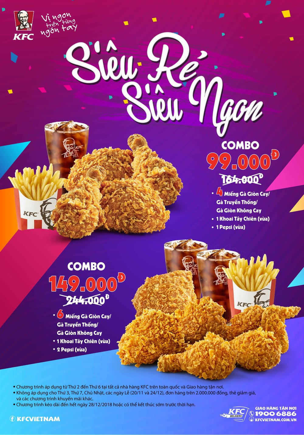 Còn chần chờ gì mà không đến KFC để thưởng thức những miếng gà siêu ngon với giá siêu hấp dẫn