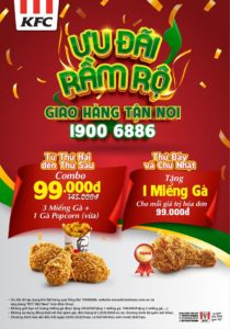 Áp dụng: đặt hàng qua hotline 19006886 hoặc truy cập website www.kfcvietnam.com.vn, ứng dụng “KFC Vietnam”.