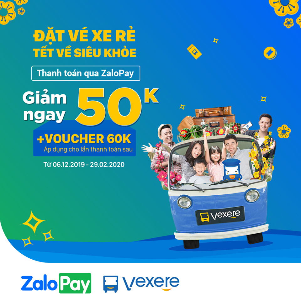 Giảm 50.000đ cho giao dịch từ 150.000đ Vexere.com + Nhận thêm voucher 60.000đ cho lần thanh toán sau.