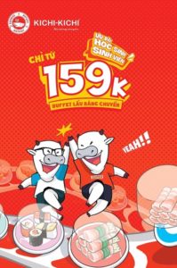 Nhận 01 BUFFET LẨU băng chuyền Kichi Kichi cho mỗi nhóm 4 khách hàng là học sinh – sinh viên.