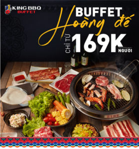 – King BBQ đang có giảm giá các mức buffet đối với nhóm khách đi 4 người trở lên: