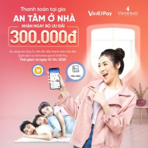 Cư dân Vinhomes lần đầu tiên thanh toán thành công phí dịch vụ Vinhomes qua tính năng “Vinhomes” trên ứng dụng VinID qua hình thức thanh toán Ví điện tử VinID Pay sẽ nhận được gói ưu đãi trị giá 300,000đ