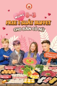 – Lẩu Wang miễn phí 01 suất buffet cho bàn có nữ áp dụng mọi khung giờ trưa từ thứ 2 đến thứ 6.