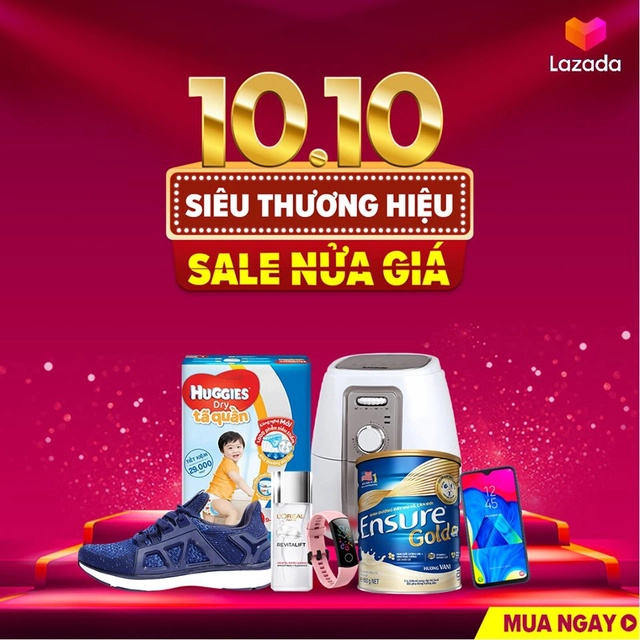 Bùng nổ NGÀY SIÊU THƯƠNG HIỆU – SALE NỬA GIÁ tại LAZADA chỉ 1 ngày 10.10 với sale sương sương giảm đến 50%, quà xịn giá trị từ các thương hiệu hàng đầu như Samsung, Lock&Lock, Juno, Laneige, Friso,…