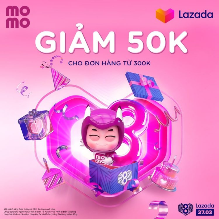 [1]: Truy cập https://pages.lazada.vn/wow/i/vn/VNCampaign/thanh-toan-bang-vi-momo-tai-lazada hoặc vào mục “Mã ưu đãi” trên app/website Lazada để Thu thập voucher