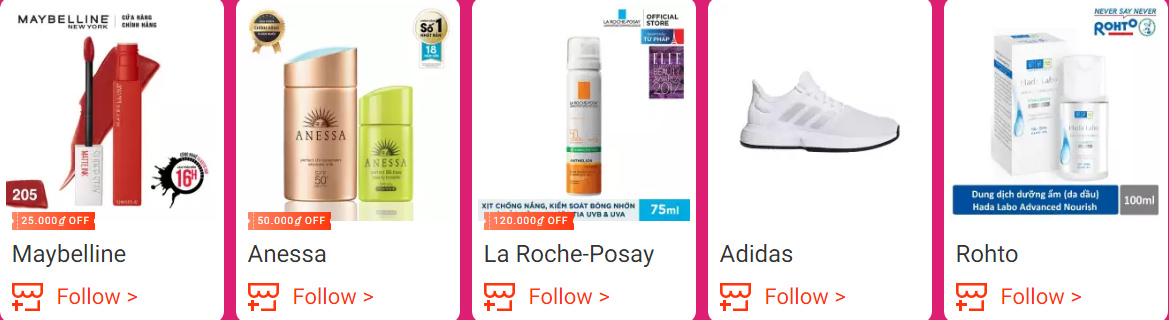 Đây là khuyến mãi đến từ các thương hiệu, các nhãn hàng chính hãng. Các đối tác này sẽ giảm giá lên đến 75% cho sản phẩm của mình. Có thể kể đến một số thương hiệu nổi bật như Samsung, Xiaomi, Oppo, LG, CoCa,… và còn rất nhiều nhãn hàng thuộc các ngành hàng khác.