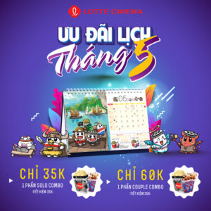 Nội dung: Khách hàng sở hữu Lịch LOTTE Cinema, nhận ngay ưu đãi tháng 5 với: