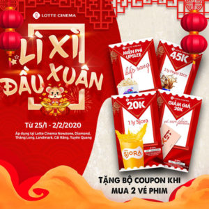 – Xem phim đầu Xuân nhận 1 trong 4 coupon pack khi mua 2 vé xem phim tại Lotte Cinema.