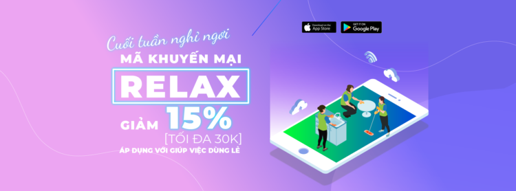 Nhập mã RELAX: giảm 15% tối đa 30K khi đặt dịch vụ giúp việc dùng lẻ
