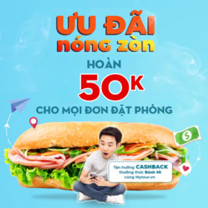 Hoàn 50k tất cả đơn phòng trên mytour.vn (cả app và website) khi nhập mã HOAN50K. Áp dụng cho 400 đơn phòng đầu tiên mỗi ngày