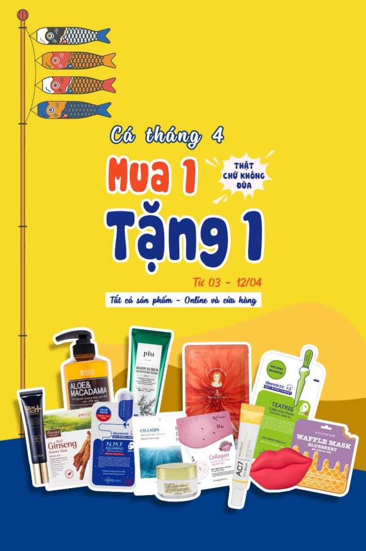 Chào tháng 4 Mediheal mua 1 tặng 1 tất cả sản phẩm đến từ các thương hiệu Mediheal A.by BOM, Kocostar, Tisha AC7, Plu, Hellocell, Pure Mind, Holikey, Maeily