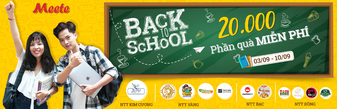 Nằm trong sự kiện Back to school. Meete có ưu đãi trà sữa và 1 số món ăn FREE cho người dùng đầu tiên sử dụng Meete tại Hà Nội.