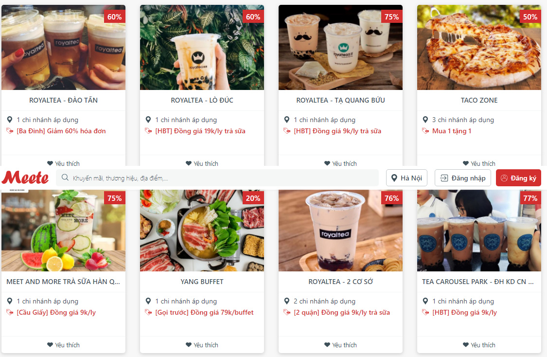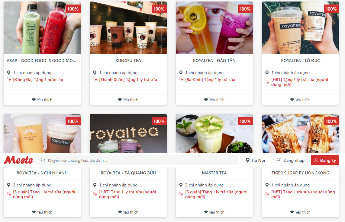 Bên cạnh những ưu đãi cho người dùng mới thì Meete vẫn có những ưu đãi trà sữa chỉ từ 9k cho một số địa điểm tại Hà Nội. Cùng xem xem có quán nào gần nhà để đặt ngay nào