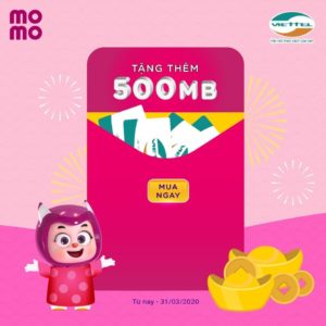 Momo ưu đãi tặng thêm 500MB khi mua mã thẻ 3G/4G Viettel trên ví Momo