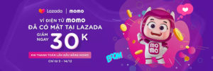 Lazada x Momo có chương trình khuyến mại: Giảm ngay 30k khi thanh toán lần đầu bằng Ví MoMo trên Lazada.