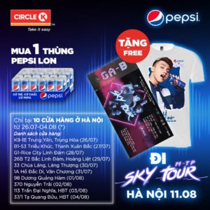 Mua 1 thùng Pepsi lon 330ml để nhận 1 vé Sky Tour 2019 hạng GA, cùng áo thun cực chất.