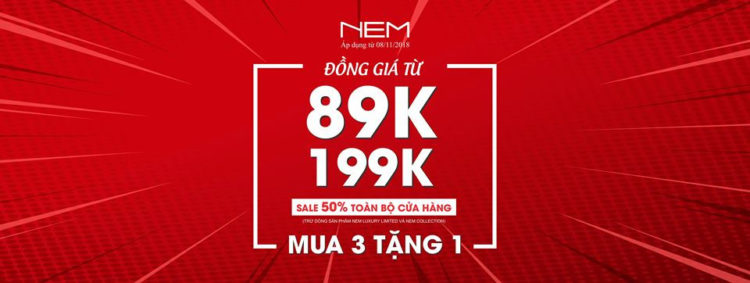 Chào tháng 11, NEM áp dụng chương trình ưu đãi cực sốc MUA 3 TẶNG 1 với hàng ngàn sản phẩm cao cấp đồng giá chỉ từ 89K