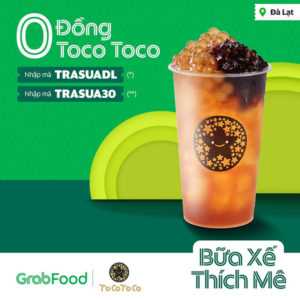 Nhập mã TRASUA30 giảm 30% menu Tocotoco Đà lạt.