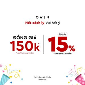 Owen ưu đãi 15% toàn bộ sản phẩm và đồng giá 150K selected items.