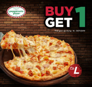 Pepperonis từ 16/11 – 30/11/2019, ưu đãi mua 1 tặng 1 Pizza L (#1- #6) áp dụng hàng ngày tại Pepperonis Linh Đàm, Pepperonis Bạch Mai và Pepperonis Lạc Long Quân.