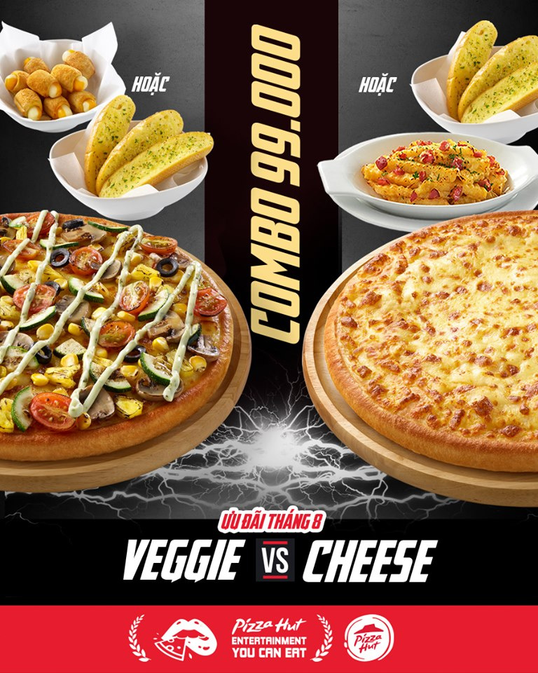 Chỉ cần đến ngay cửa hàng gần nhất với 99k trong tay, các “tín đồ Pizza” sẽ được lựa chọn 1 trong 2 Combo “chay – mặn” sau: