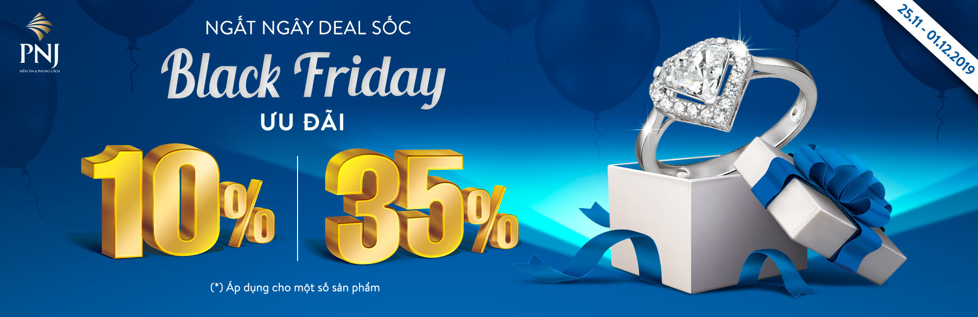 Từ ngày 25/11/2019 – 01/12/2019, PNJ tổ chức chương trình Black Friday 2019 giảm giá trang sức đá quý từ 10% lên tới 35%. Chương trình áp dụng tại toàn bộ các cửa hàng trên toàn quốc của PNJ.