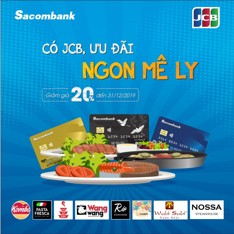 Từ 11/12/2019 đến 31/12/2019, chủ thẻ Sacombank sẽ nhận được ưu đãi tới 20% khi thanh toán tại các cửa hàng sau đây: