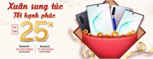 Dành riêng cho chủ thẻ tín dụng Sacombank khi mua Samsung Note 10 hoặc Samsung Note 10 Plus giảm 25% và hoàn thêm 1.000.000 VND.
