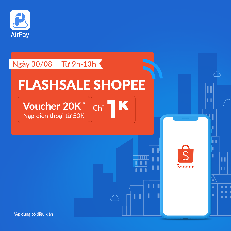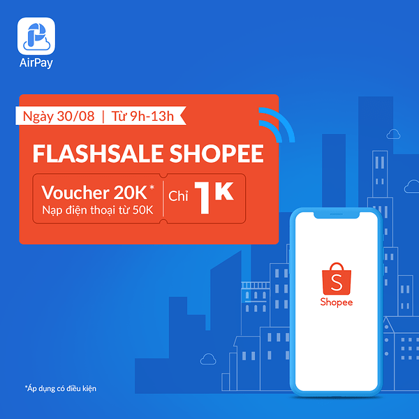 • Áp dụng cho giao dịch nạp điện thoại từ 50.000VNĐ qua Ví điện tử AirPay.