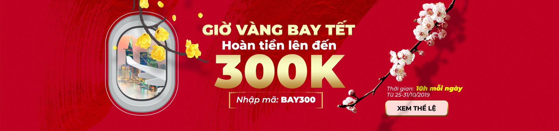 Giờ vàng bay Tết, Hoàn tiền lên đến 300k.