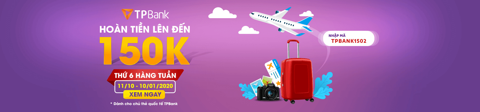 Thứ 6 hàng tuần, Chủ sở hữu thẻ quốc tế VPBank có cơ hội hoàn tiền lên đến 150k