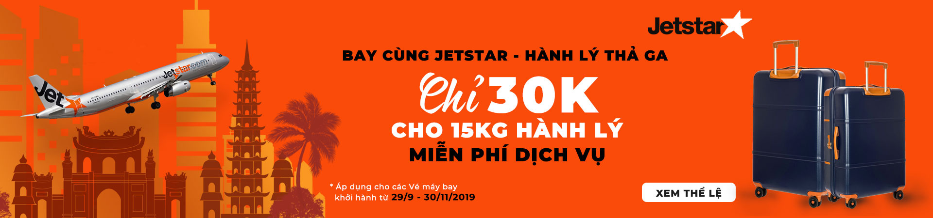 Áp dụng cho các vé máy bay khởi hành từ 29/9 – 30/11/2019