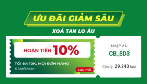 Nhập mã CB_SD3 hoàn tiền 10% tối đa 10K