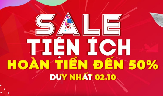 Sale tiện ích hoàn tiền đến 50% duy nhất ngày 2/10: