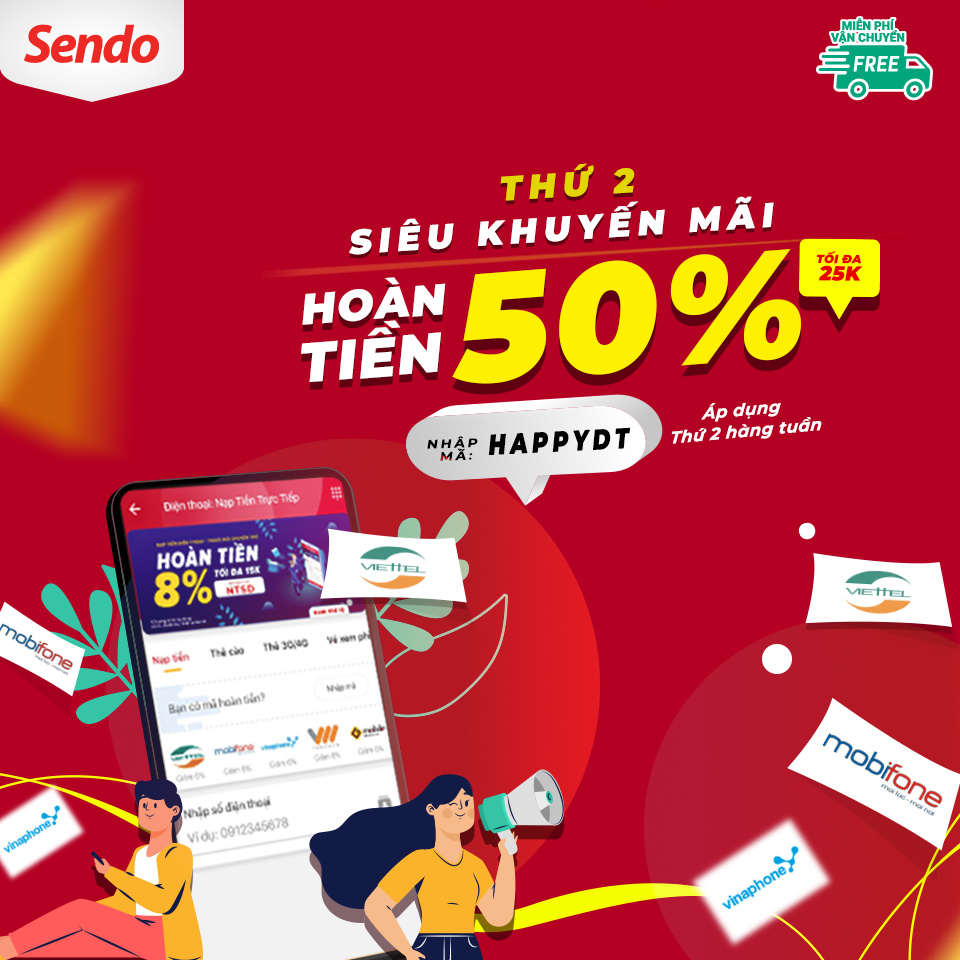 Nhập mã [???????] khi nạp tiền điện thoại để nhận hoàn tiền đến ??%, tối đa 25.000đ vào ví SenPay.