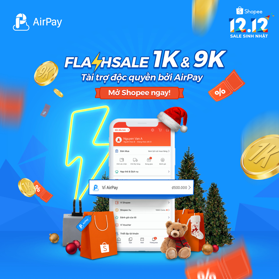 Khởi động Shopee 12.12 – Ưu đãi flash sale thỏa thích đến với người dùng Ví điện tử AirPay từ ngày 01/12 đến hết ngày 12/12.