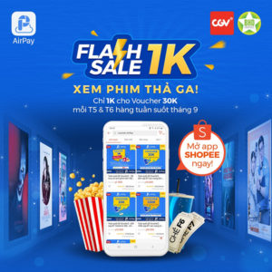 • Mã giảm giá áp dụng cho dịch vụ mua vé xem phim với giao dịch giá trị tối thiểu từ 100K (BHD: trực tiếp qua ứng dụng AirPay), và trên 100K (CGV: trang web, ứng dụng) trả bằng AirPay