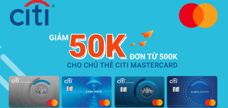 Giảm 50K cho đơn hàng từ 500K khi thanh toán bằng thẻ Citi Mastercard