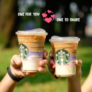 Mua 1 Tặng 1 khi đặt qua Grab, Now hoặc nếu có đi ngang cửa hàng Starbucks nào tại Tp. HCM thì ghé mua mang về.
