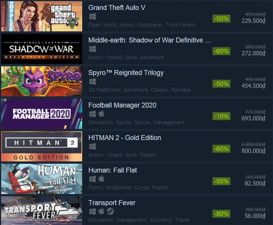 Không chỉ thế, Steam cũng tặng chúng ta một đống deal game được giảm lên tới 50%