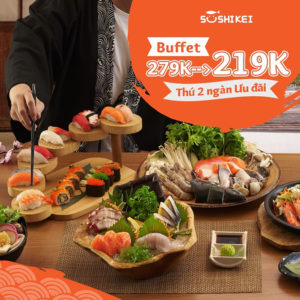 Sushi Kei ưu đãi thứ hai mỗi tuần cho học sinh sinh viên chỉ 219K/người (giá gốc 279K)