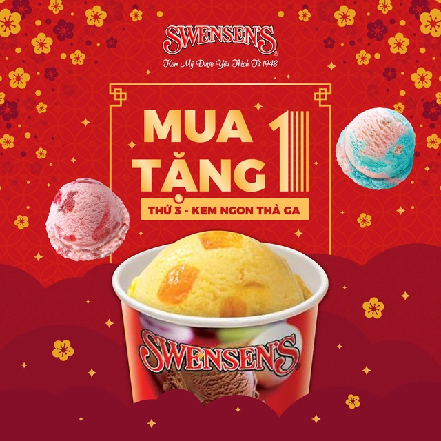 – Swensen’s VN ưu đãi mua 1 tặng 1 khi mua kem viên Mỹ vào thứ 3 hàng tuần.