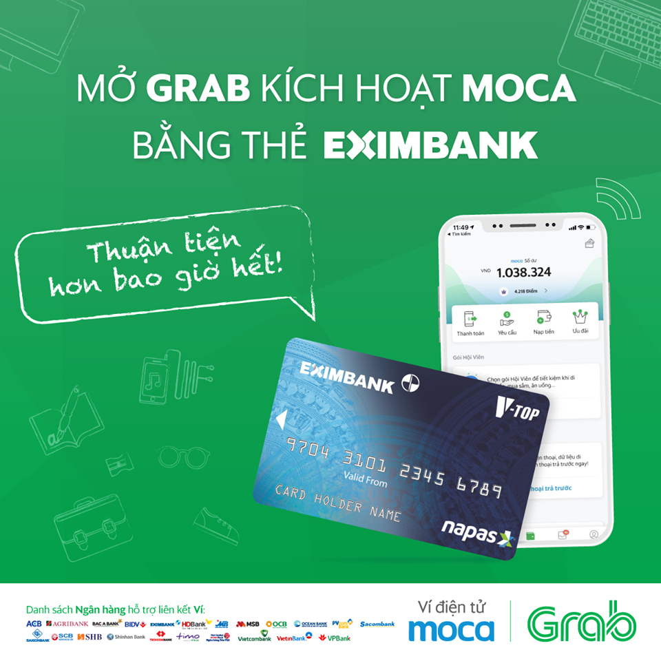 Ưu đãi lên đến 100k cho chủ thẻ Eximbank khi liên kết với ví Moca trên ứng dụng Grab