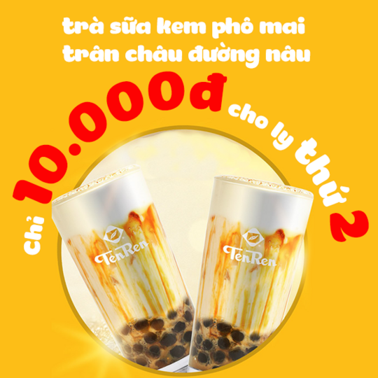 Trà sữa kem phô mai trân châu đường nâu ly thứ 2 chỉ 10k