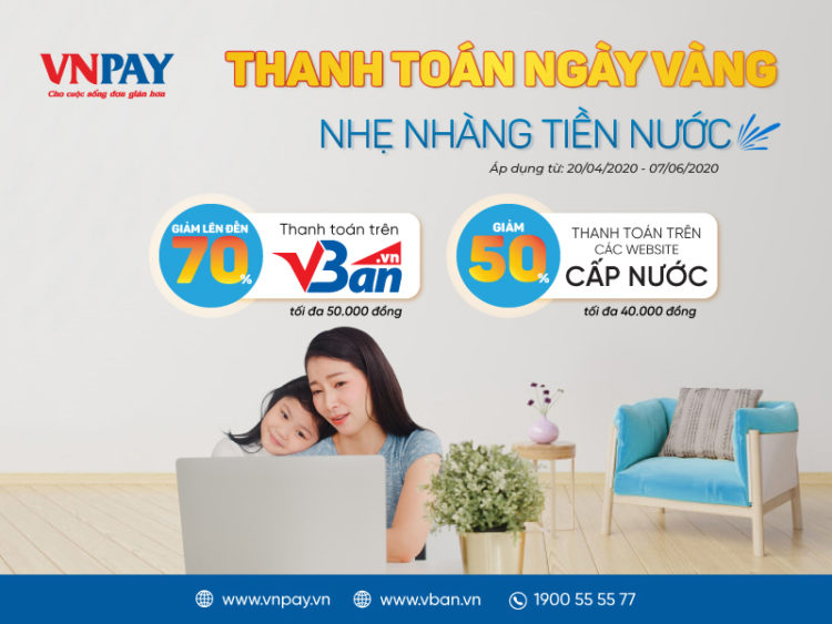 Mỗi ngày, 50 khách hàng đầu tiên được giảm 40% (tối đa 30.000 đồng/hóa đơn) khi thanh toán thành công hóa đơn tiền nước trên website www.vban.vn