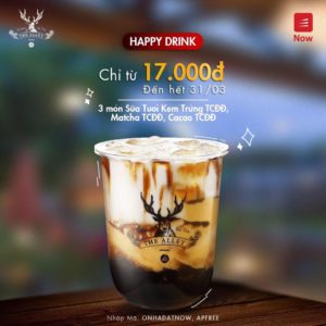 Ưu đãi đến 35% cho 03 thức uống Happy Drink tại The Alley khi order trên Now bao gồm: Matcha trân châu đường đen, Cacao trân châu đường đen, Sữa tươi kem trứng trân châu đường đen. Nhập thêm mã giảm giá chỉ còn từ 20K, bao gồm: